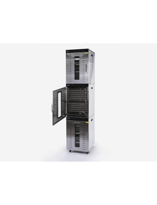 Creada para la alta producción en gastronomía, catering y pastelería. Su diseño modular y compacto ofrece gran capacidad de deshidratación ocupando mínimo espacio.